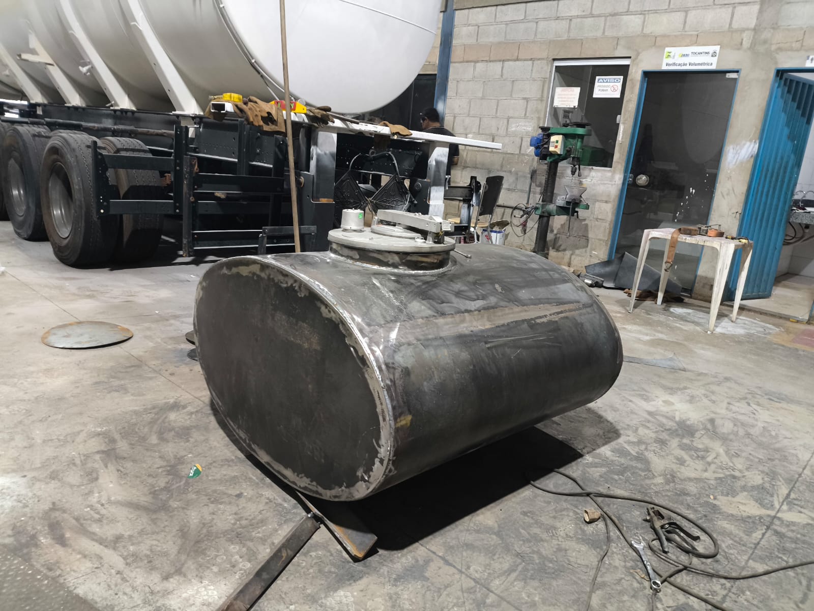 Tanque 800 L para transporte de combustível homologado com CTPP, fabricado em aço carbono atendendo a norma ASTM-A36.